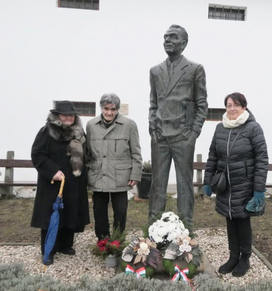 2014-ben avattuk fel Györe Pál szobrát a múzeum előtt, örök emléket állítva alakjának. Az alkotás Pogány Gábor Benő szolnoki szobrászművész munkája. Kérem a megjelenteket, hogy helyezzük el a megemlékezés virágait a koszorúnál.